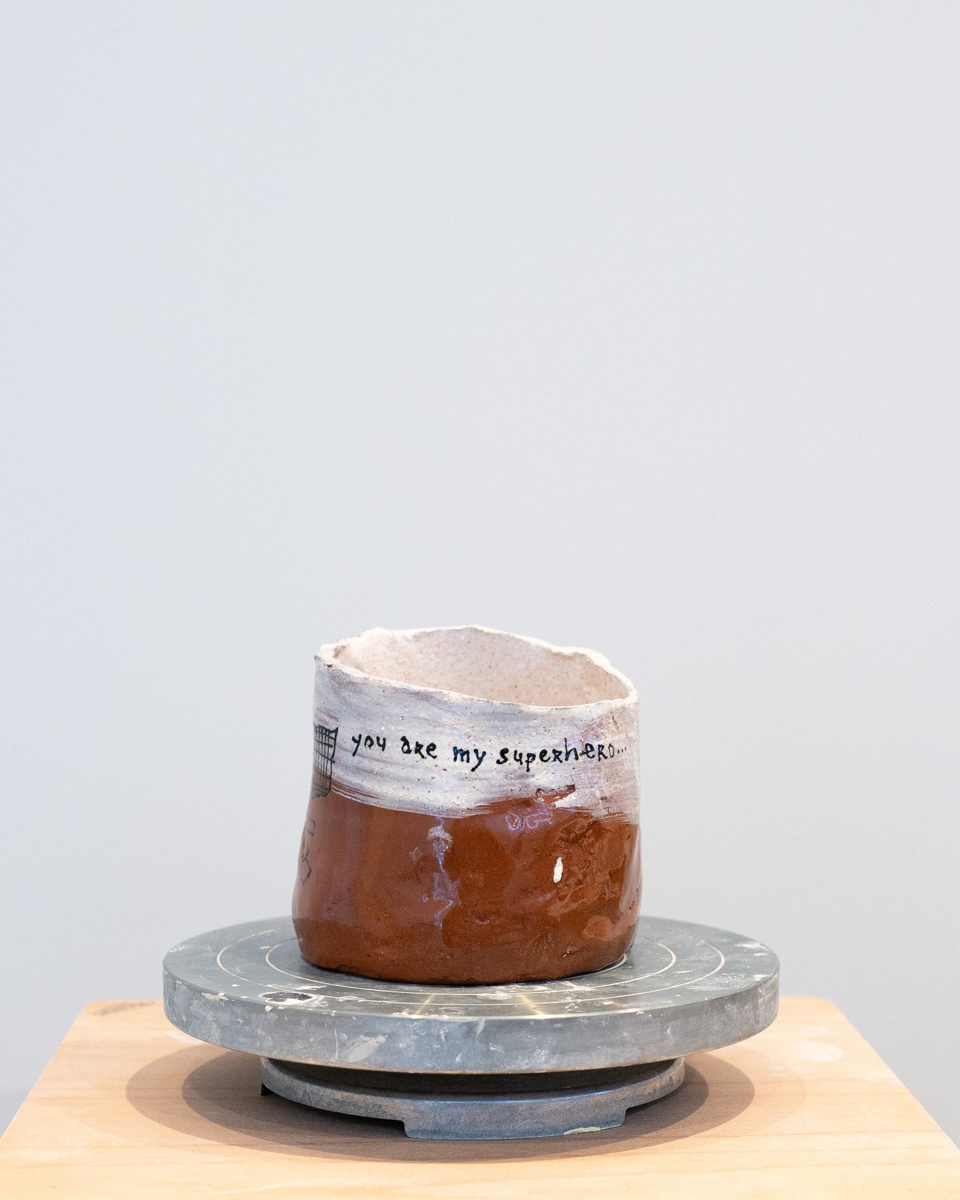 Op het werk staat met de hand geschreven: you are my superhero.