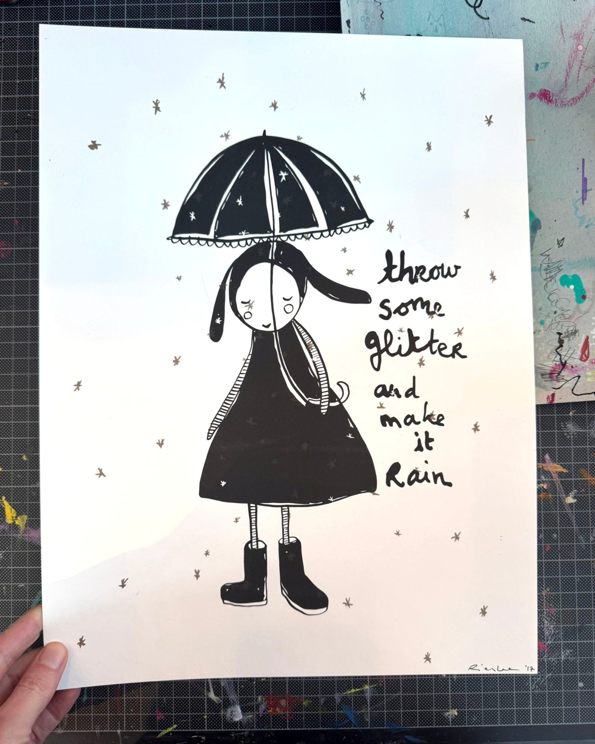 Riso print · gouden glitters · ca. 39,5 × 29,7 cm · elke print is uniek
